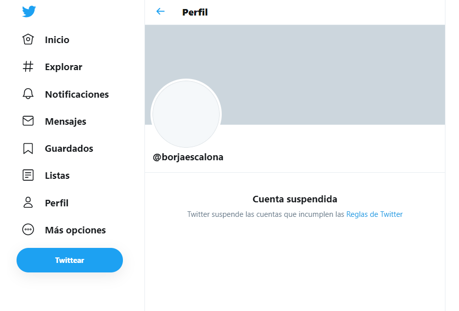 No sabemos cuándo fue suspendida la cuenta, pero dado que comparte su perfil en Youtube seguramente no lleva mucho tiempo suspendida.