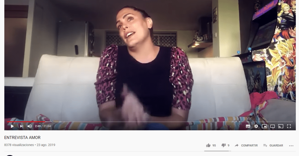 También Amor ha participado de una entrevista y además en casa de Borja, en el sillón blanco con fondo a la pequeña cocina de un apartamento que parece es un «estudio».